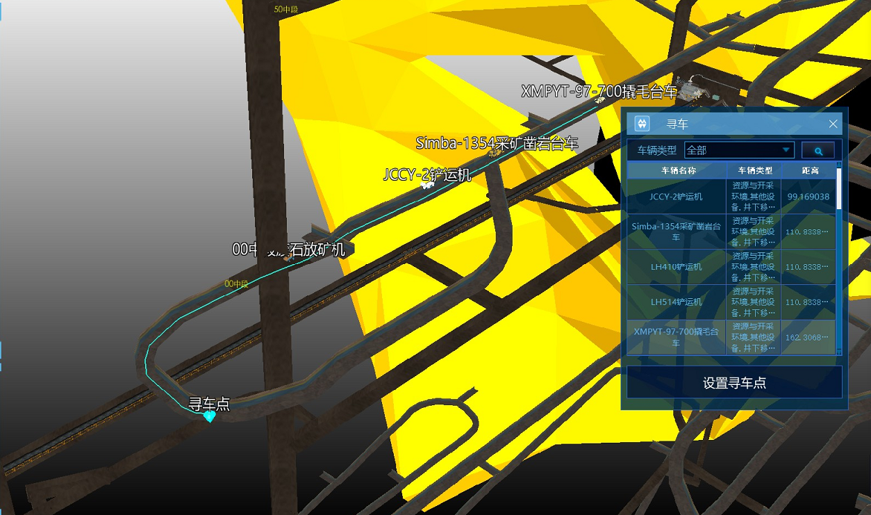 (1)通過三維礦業軟件及其它建模軟件建立礦區地表、井下礦體、巷道三維模型和設備模型