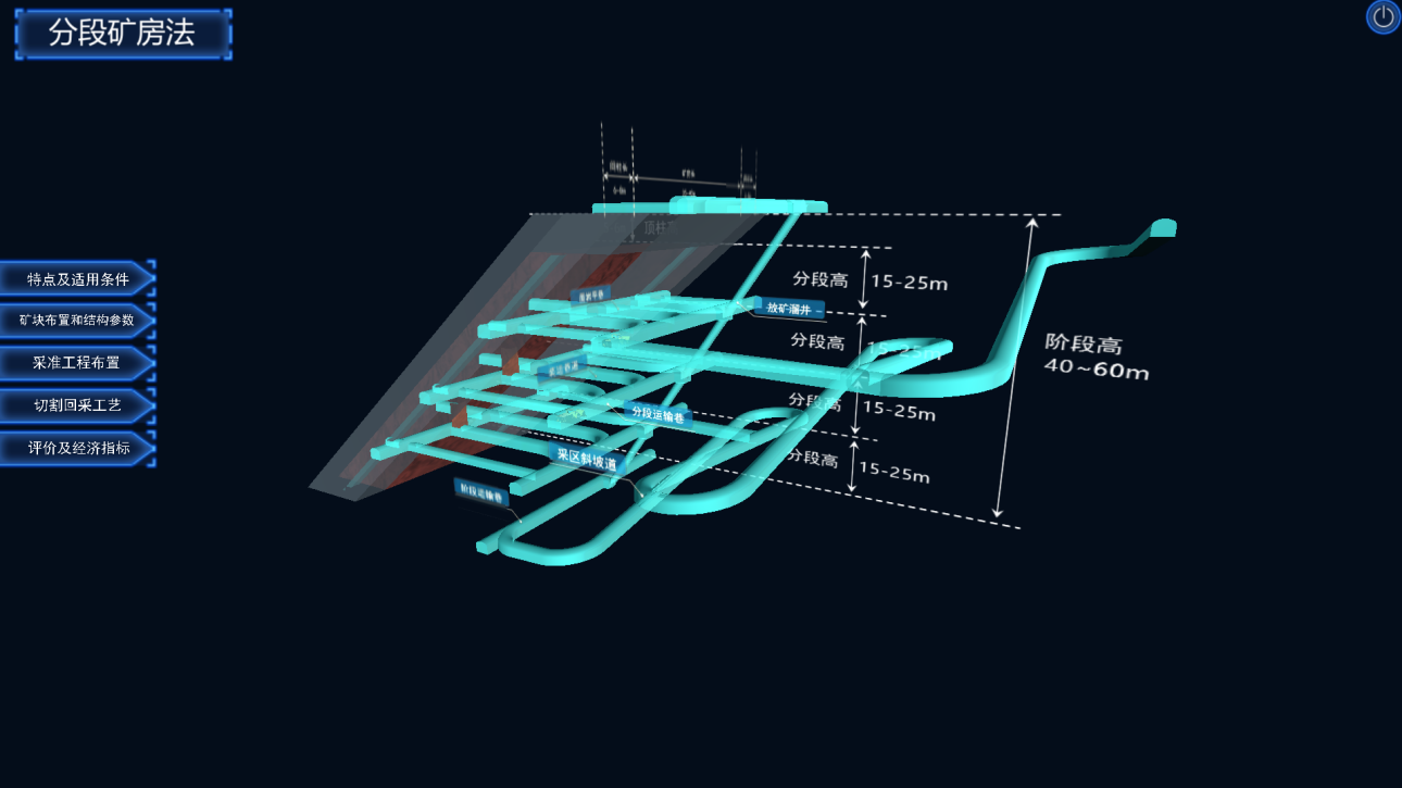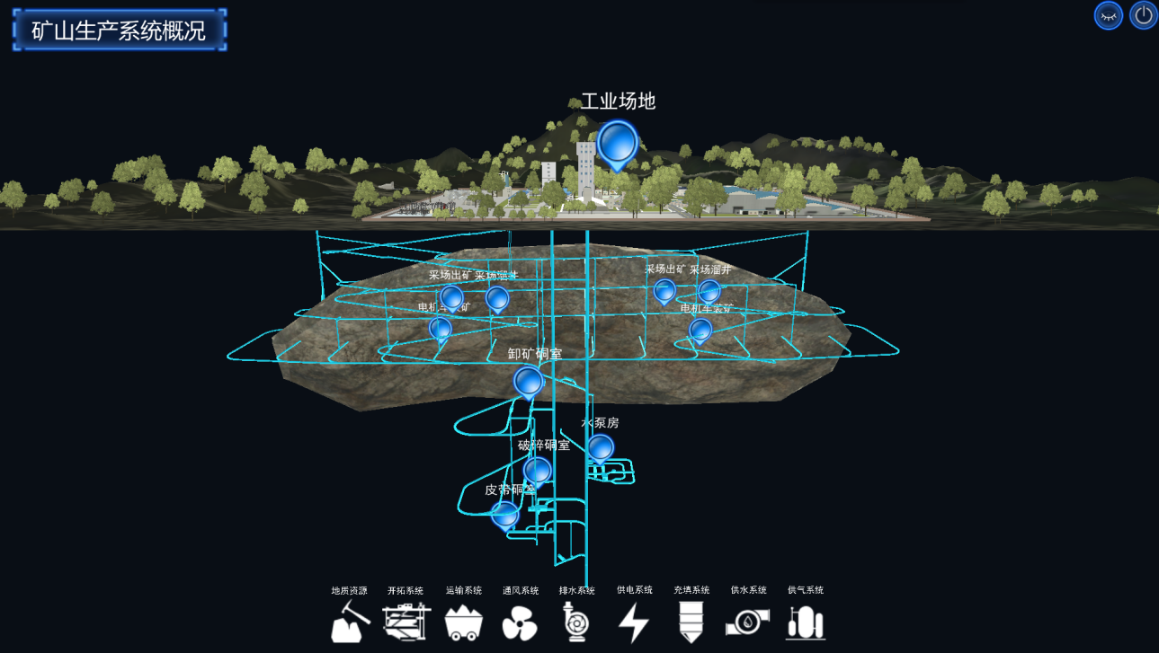 系統(tǒng)構(gòu)建露天和地下礦山真實(shí)場(chǎng)景,對(duì)工業(yè)廣場(chǎng),生產(chǎn)系統(tǒng),采礦方法和采裝設(shè)備等進(jìn)行虛擬仿真,充分解決了采礦工程專業(yè)教學(xué)不直觀,現(xiàn)場(chǎng)實(shí)習(xí)成本大的問題,直觀的教學(xué)模式也能充分激發(fā)學(xué)生的自主能動(dòng)性。